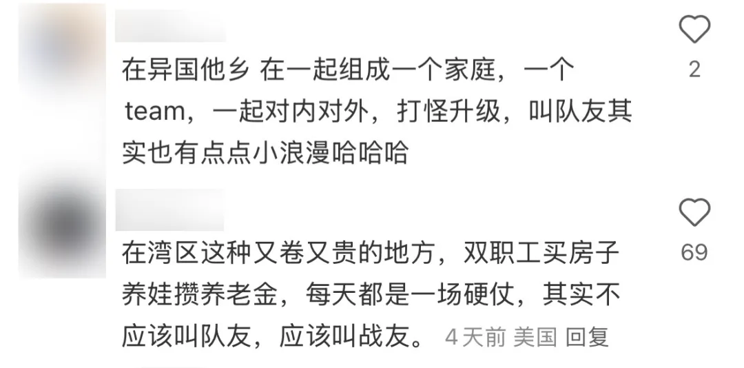 “队友这个词,总出现在打工人夫妻的吐槽帖中,要么是双职工家庭的育儿分工不平等了,要么是婚房贷款压力大……感情基础全然不提,只觉得他们的人生都被格式化了,只剩下同一个套路:鸡娃、搞钱、还房贷。”