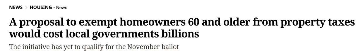 一项拟议中的全州公投提案,计划让60岁及以上房主免缴房产税,正引发广泛争议。最新官方财政分析警告称,如果该政策获得通过,可能导致地方政府每年损失数十亿美元收入,对学校、警察、道路等公共服务造成重大影响。