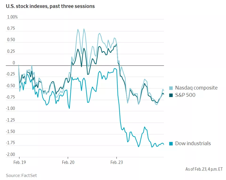 2月23日,投资者还纷纷将资金转向能源、必需消费品等板块,但这些行业在主要股指中的权重相对较低。投资机构表示,上述防御性资产愈发受捧,或表明华尔街对后市前景愈发谨慎。