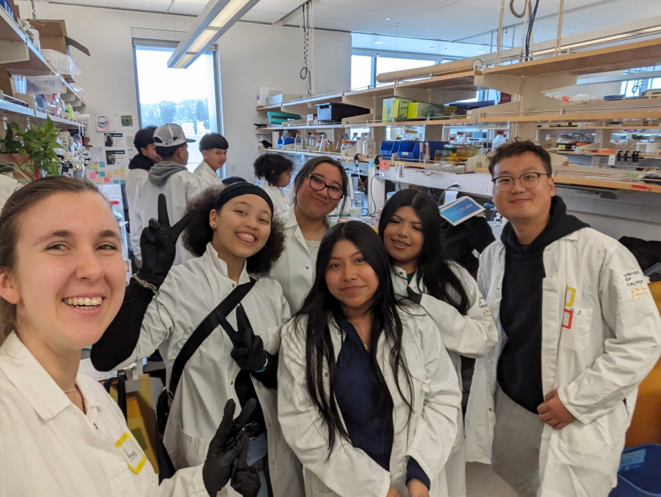 戴大伟(右一)与在实验室参与实践活动的高中生们。