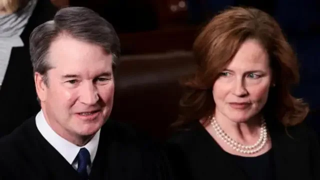 美国大法官布雷特·卡瓦诺与艾米·科尼·巴雷特(右)对特朗普是否有权征收关税持不同看法,巴雷特反对任命她的总统的主张。