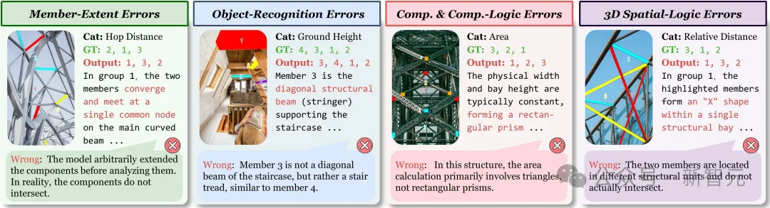 论文对代表模型做了人工复盘,归纳出四类高频错误: