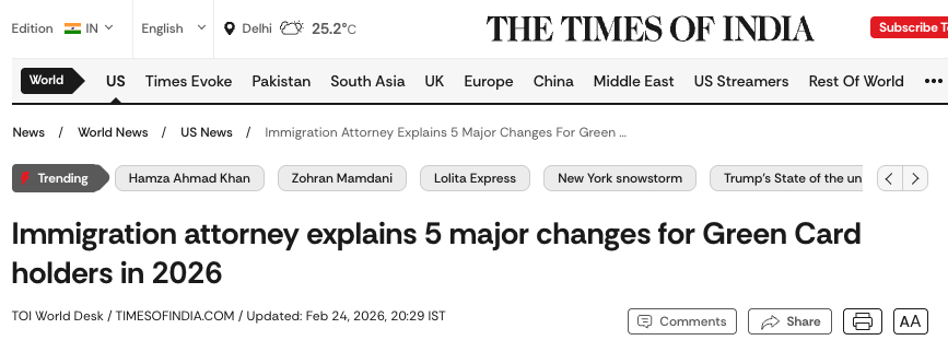 绿卡政策五大变化曝光the times of india