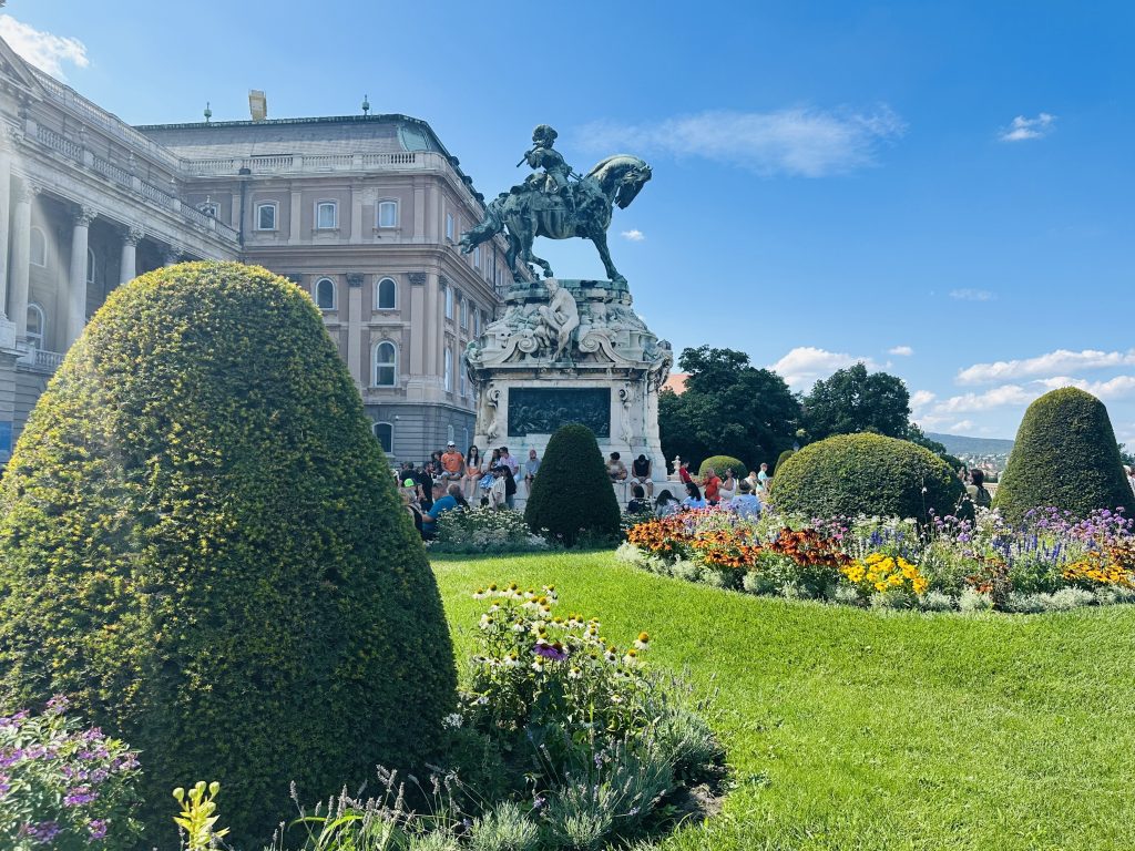 布达城堡多瑙河露台上矗立着萨伏依的欧根亲王骑马雕像,纪念这位罗马帝国名将于1686年收复布达的功绩。雕像由匈牙利雕塑家约瑟夫·罗纳创作,1900年揭幕。