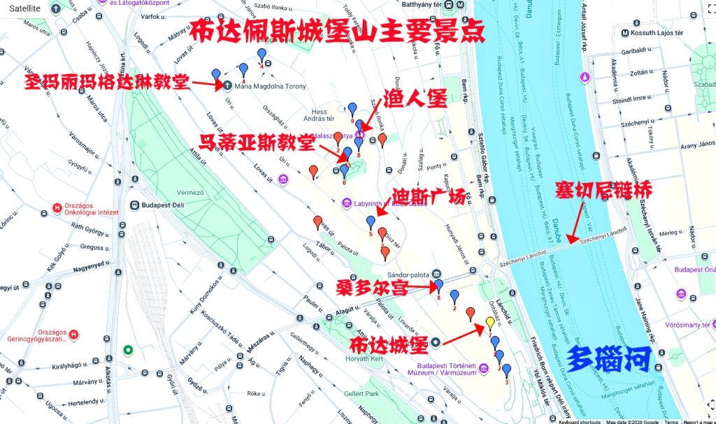城堡山(Castle Hill)静立于多瑙河西岸,是布达佩斯历史与精神的高地。自中世纪以来,这里便是王权与信仰的核心。山顶的布达城堡 (Buda Castle) 历经奥斯曼统治、哈布斯堡重建与二战炮火,在毁灭与修复中层层叠加,形成今日融合中世纪遗迹与巴洛克风格的建筑群。