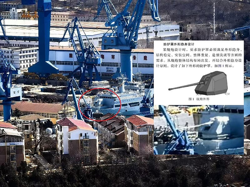 军事媒体《Naval News》与《The War Zone》揭露,中国解放军海军(PLAN)正在测试中国现代海军最大口径的舰炮,象征海军火力支援能力的重大提升。报导指出,这款舰炮被安装在辽宁省大连辽南船厂的910型综合试验舰上;并分析认为,该炮可能用于两栖登陆作战、对地攻击及反舰任务,特别在台湾(专题)情势下具战略意义。