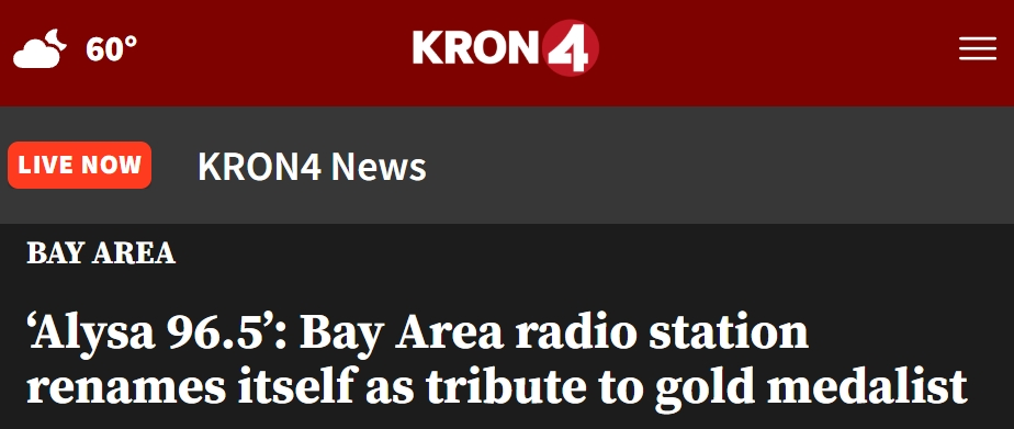 旧金山湾区一家电台——96.5KOIT宣布,为向刘美贤致敬,该电台将暂时更名为Alysa 96.5,此次更名将持续一天。电台在一份新闻稿中表示,将于2月23日正式更名为Alysa 96.5。