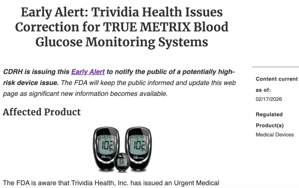2月17日,FDA官网发布公告,指出三诺生物旗下产品真睿系列(TRUE METRIX)血糖监测系统存在高风险隐患。