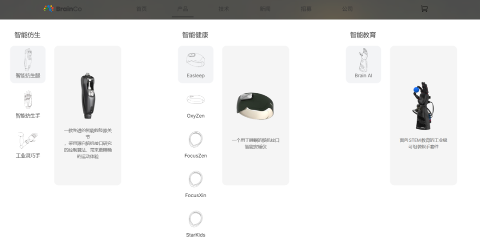 在非侵入式脑机接口领域,比较有代表性的企业是强脑科技,他们推出过不少头环产品,而比较出圈的是智能仿生手,通过检测神经和肌肉细胞的电信号,来解读使用者的意图,做出相应动作。