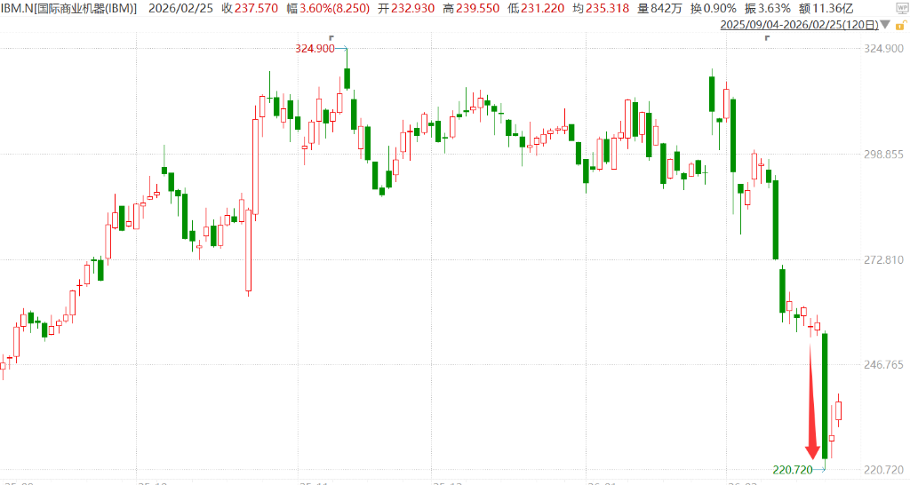 IBM就因Anthropic表示Claude Code可替代运行在其主机上的Cobol语言,周一股价创下2000年以来最大单日跌幅。