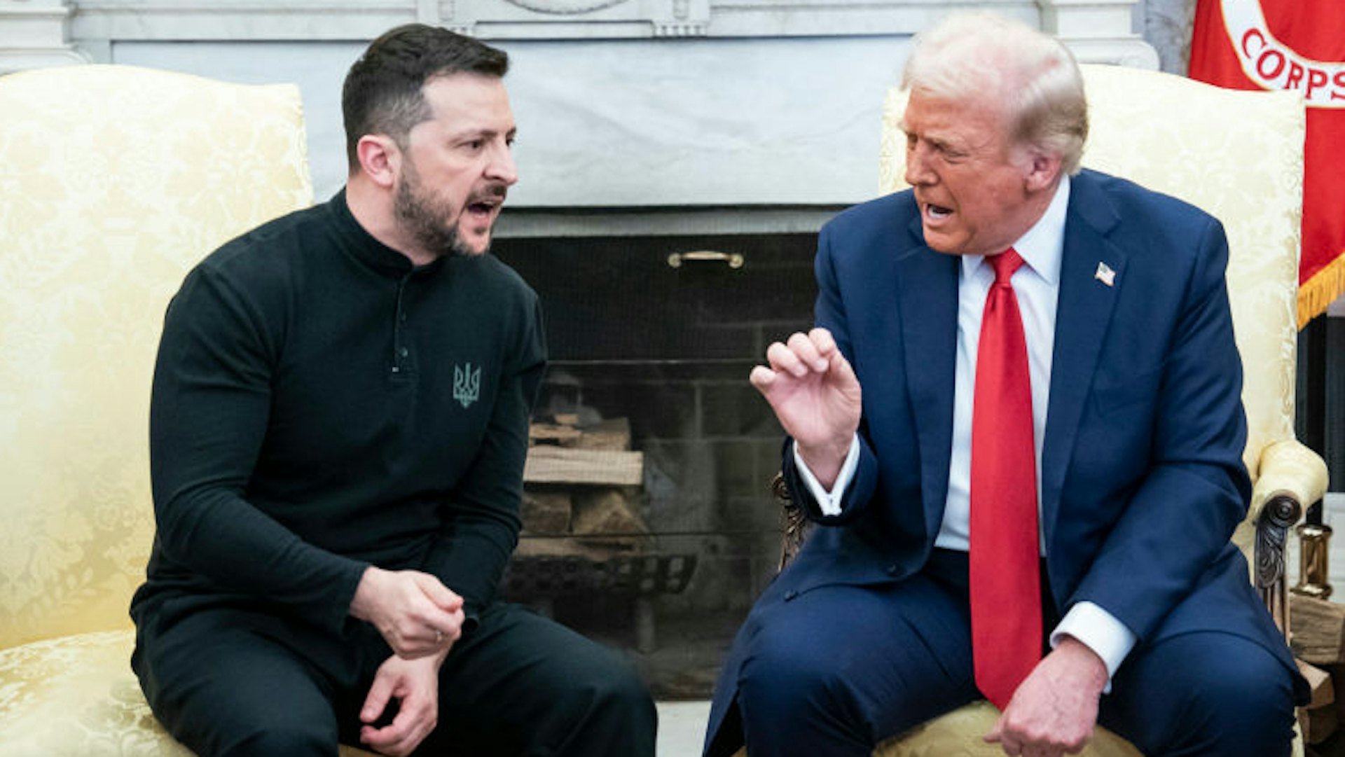 2025年2月28日,美国华盛顿,图为到访白宫的泽连斯基和川普在椭圆形办公室发生言语冲突。(Getty)
