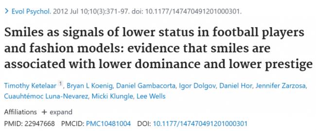 一篇题为《Smiles as signals of lower status in football players and fashion models》的论文,却补充了一个被忽视的关键点: