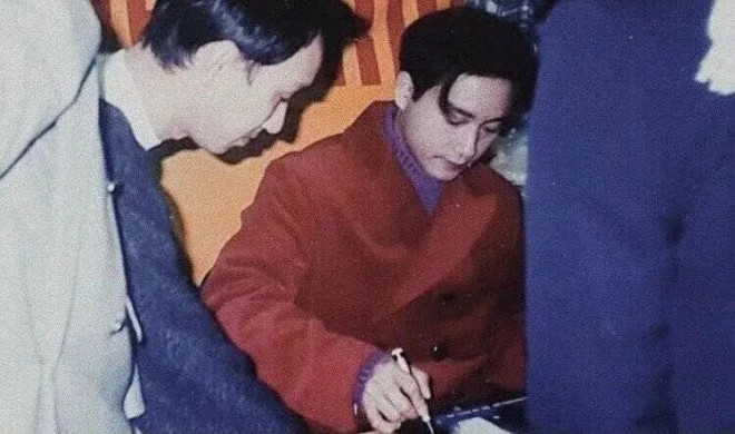 张国荣至上海鹭鹭酒家用餐,某服务生请他签名,他自然应允。