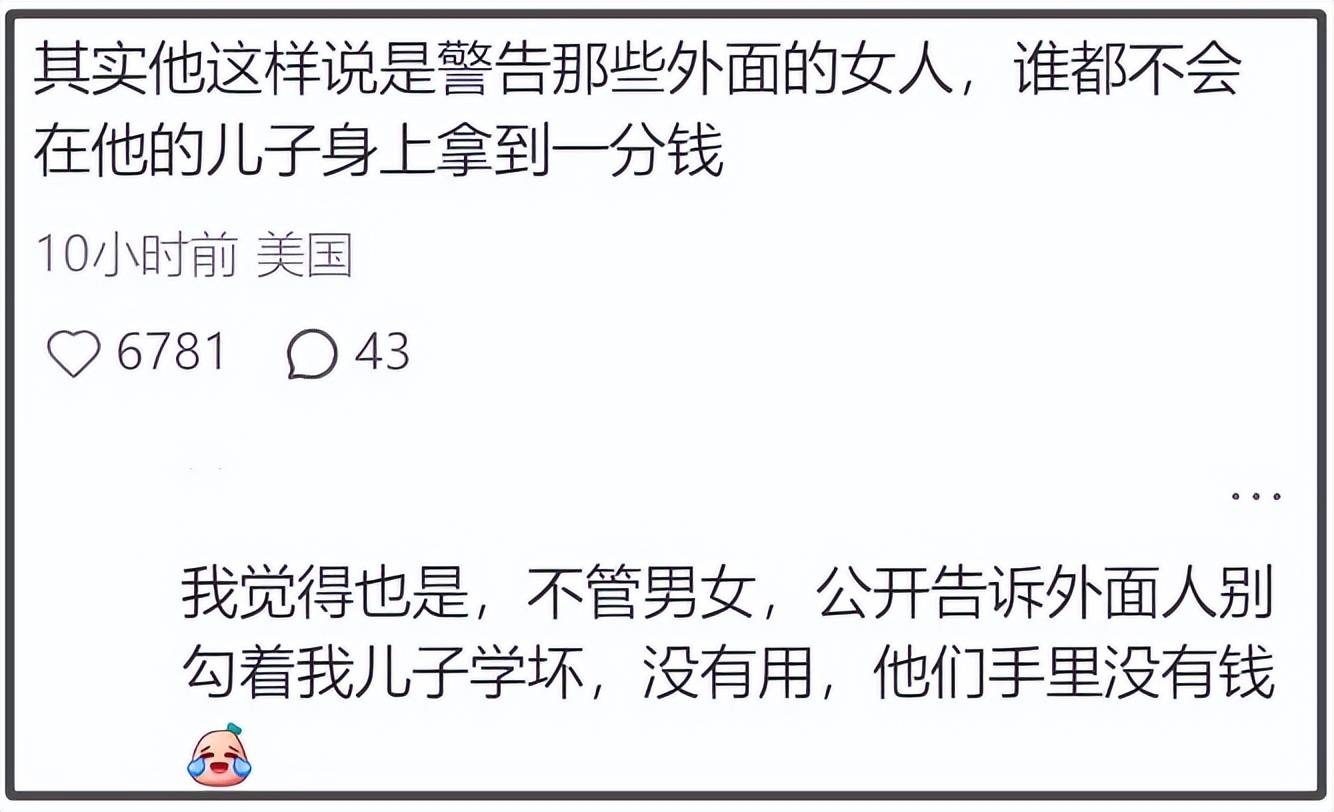 网友表示这就差明说,其他人不要贪图向佐钱财,或是勾搭上位了,一分钱都不会得到。当然了,这里也不是说向佐会有外遇的意思,只是向华强表示了解儿子们的个性,才做的安排。