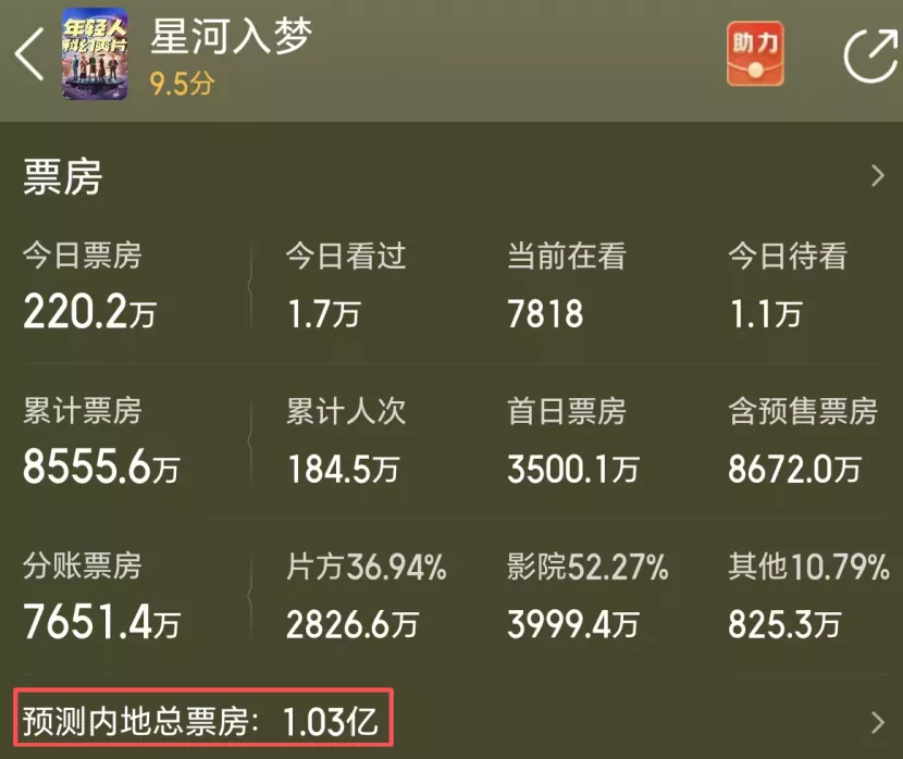 而相比之下,《星河入梦》就颇为惨烈了,上映九天,累计票房居然才8000多万,还是在春节档这种全年最热门的档期,存在感几乎没有,注定翻身无望。