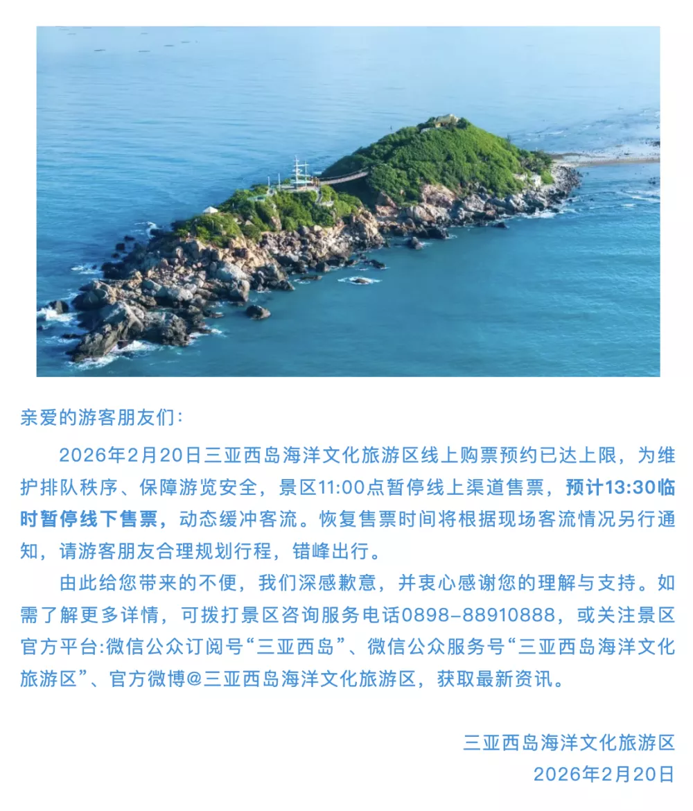 在官方账号发布“线上购票预约已达上限,景区11:00暂停线上渠道售票,预计13:30临时暂停线下售票”的信息。