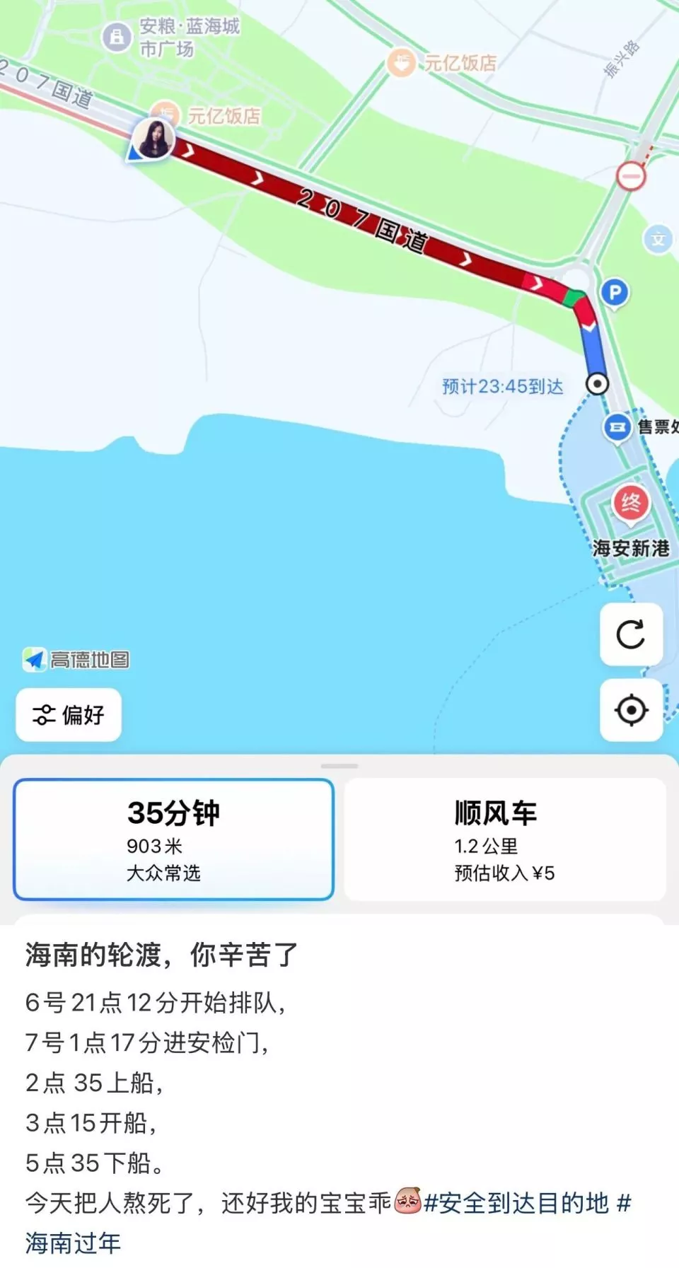 可好不容易从三亚一路堵到海口后,发现海南和广东中间那块小海,都快被先来等船的朋友们给填平了。