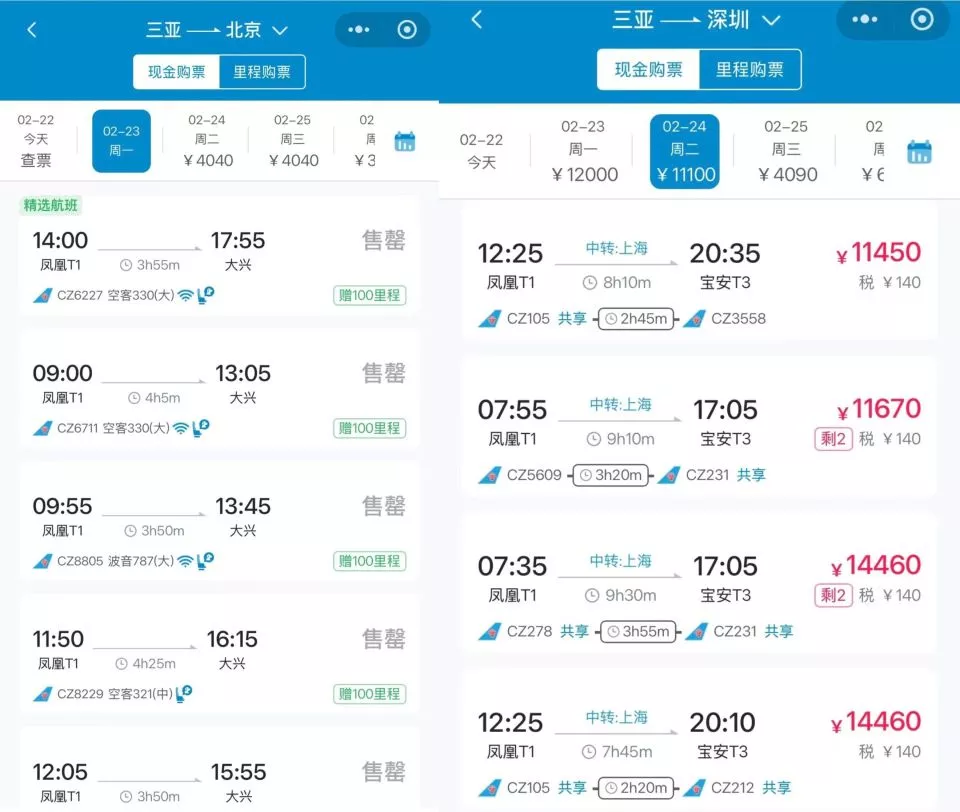 明天三亚飞北京的机票已经能够买到,3月3日以后机票价格也回落到了日常的2000元以内。