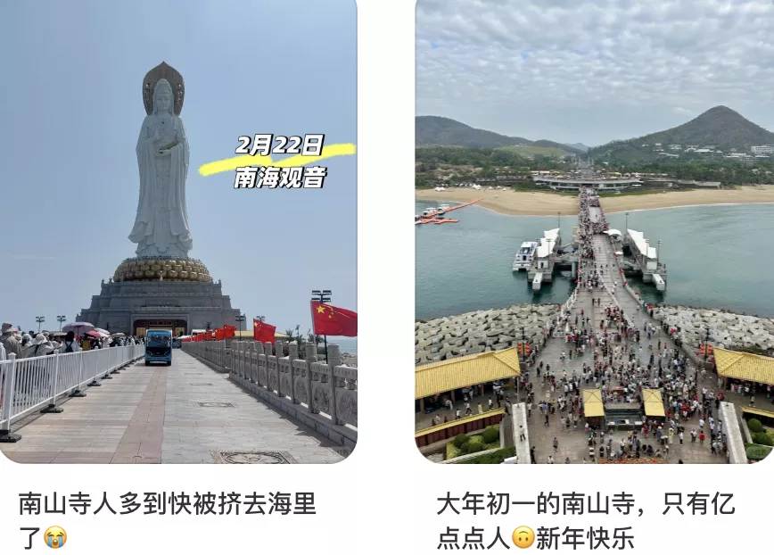 三亚南山寺的人头比椰子还多,游客密集到快要被挤到海里的热闹。