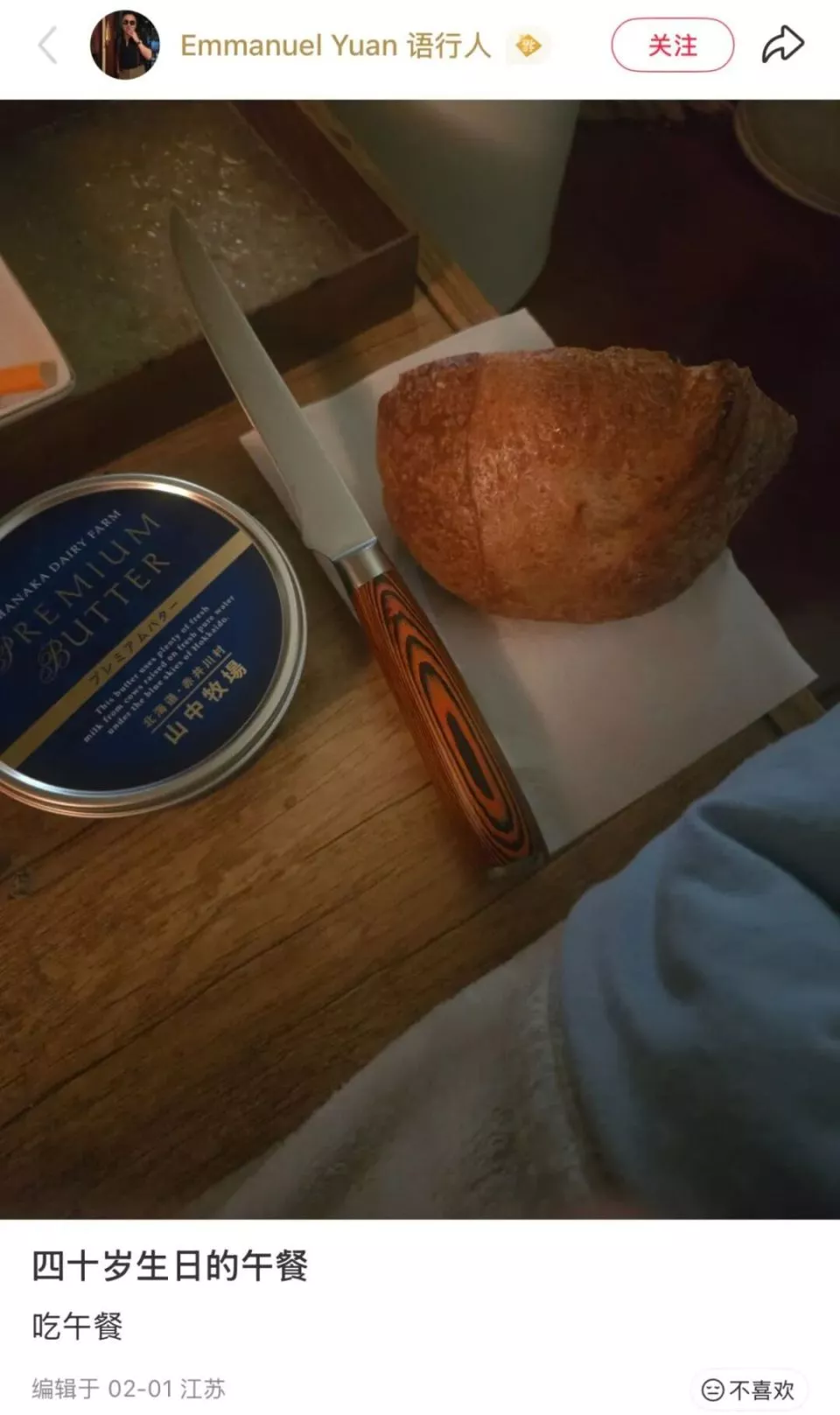 ▲袁旭40岁生日餐。 图/ 小红书@EmmanuelYuan 语行人