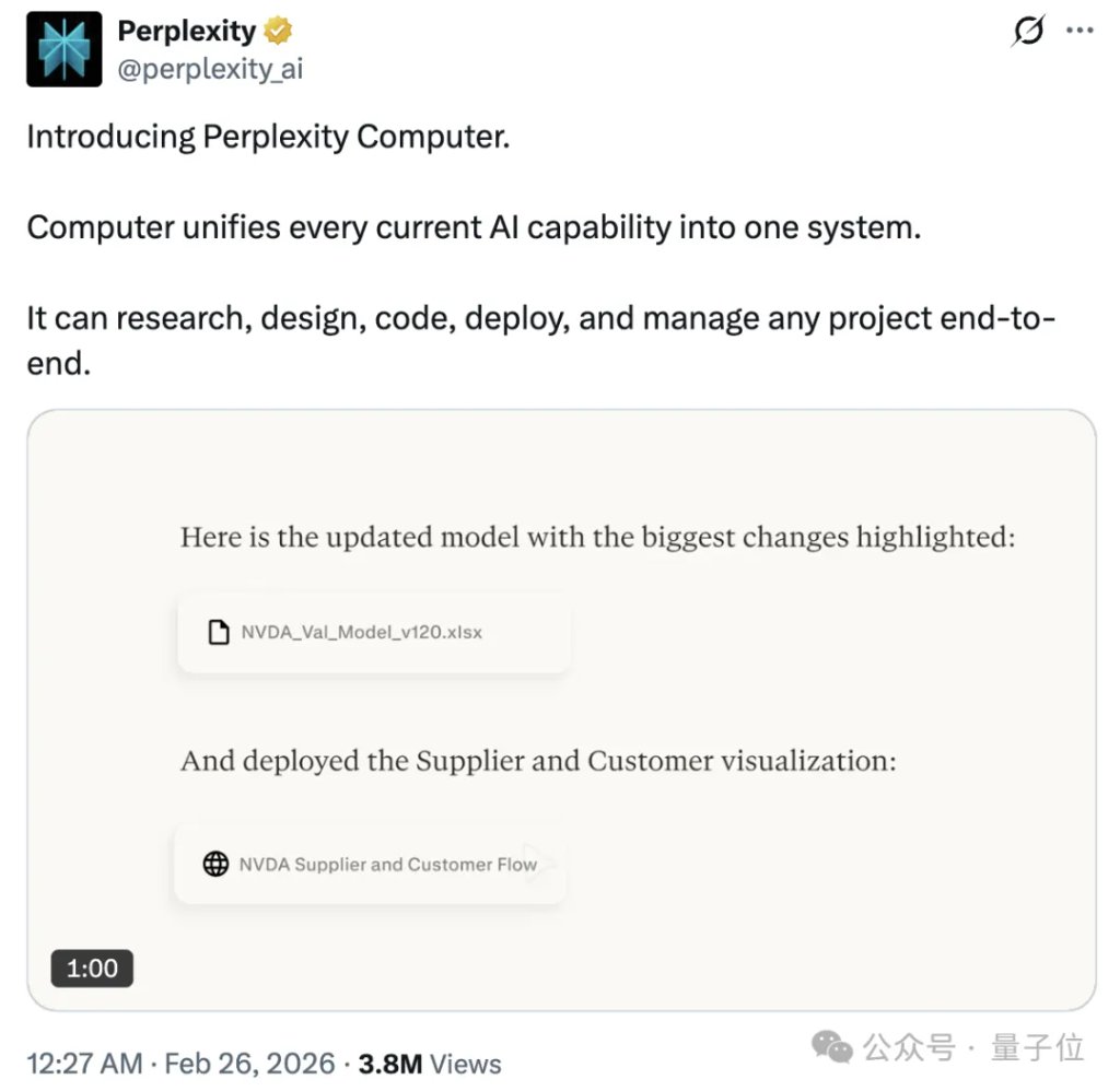 Perplexity发推表示,推出新产品Perplexity Computer,一个基于浏览器的、全能型通用数字员工。