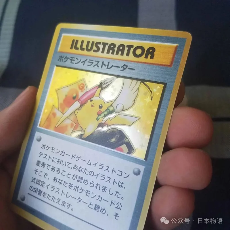 这张卡诞生于1998年。当时日本漫画杂志《Corocoro Comic》举办插画比赛,约40名获奖者得到这张特殊卡片作为奖励。卡面上是一只手持画笔的皮卡丘,卡名写着“Illustrator”。它并非对战卡,没有攻击数值,也不参与竞技体系,更像是一枚官方授予的荣誉徽章。