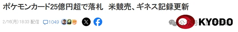 2月16日,一张名为“宝可梦(口袋妖怪)插画师”的卡牌,在美国Goldin在线拍卖会上以1649万2000美元成交,折合约25亿2800万日元(约1.2亿人民币)。它此前已经是最昂贵的宝可梦卡牌,此次成交不仅刷新了自身纪录,也改写了所有集换式卡牌的世界纪录。