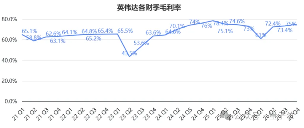 再看利润表现,英伟达第四季度毛利率为75%,环比增长1.6个百分点,同比上涨2个百分点。