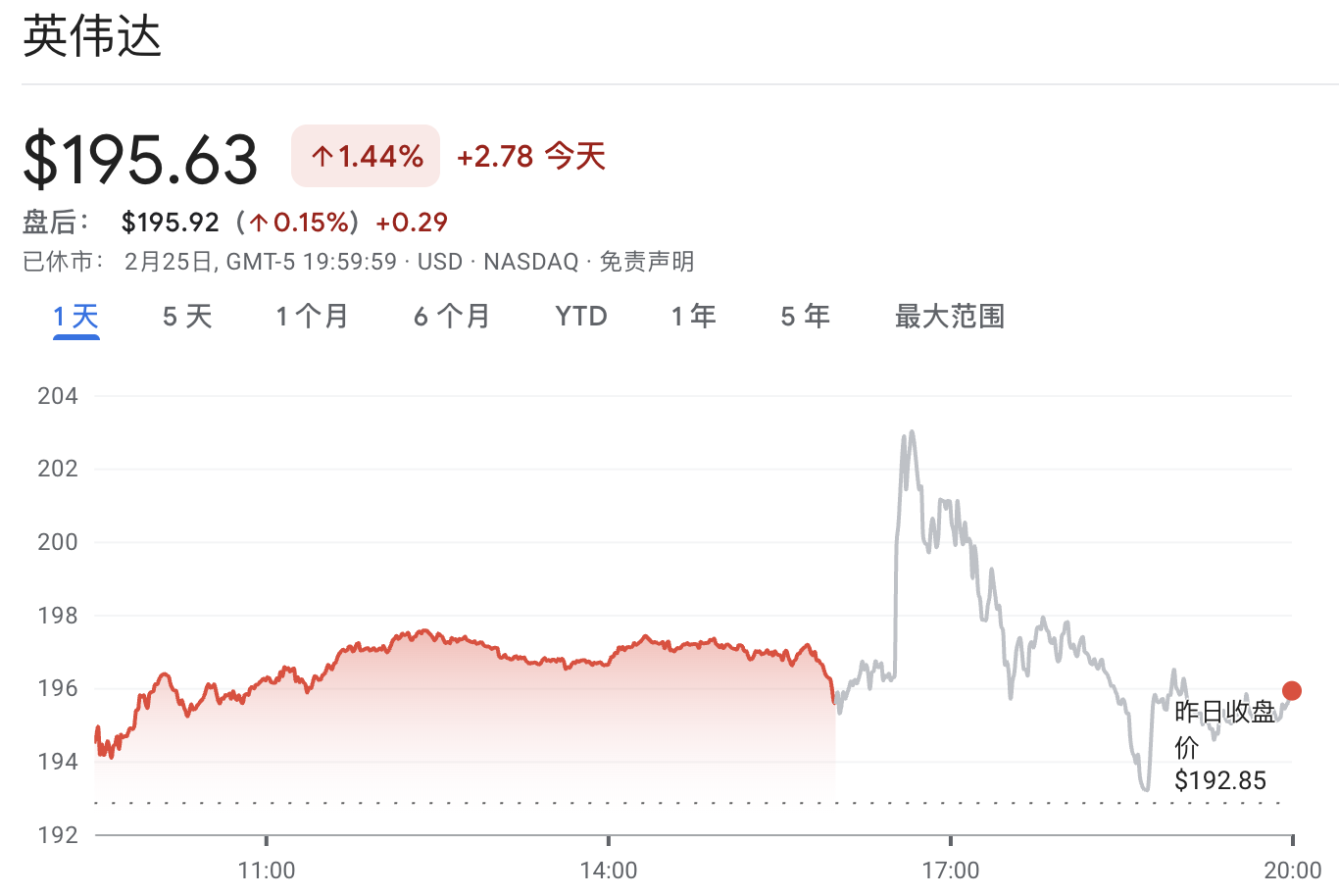 英伟达给出的财年第一季度营收指引约为780亿美元,明显高于华尔街平均预期的728亿美元,但公司在分析师电话会期间股价一度下跌约1.5%,到当晚整体几乎持平。
