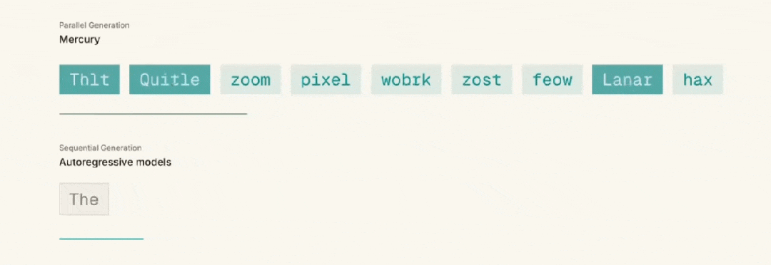 你瞅瞅,对比之下传统自回归的“打字机模式”(按顺序一个个token往外吐)是不是就有点像乌龟了: