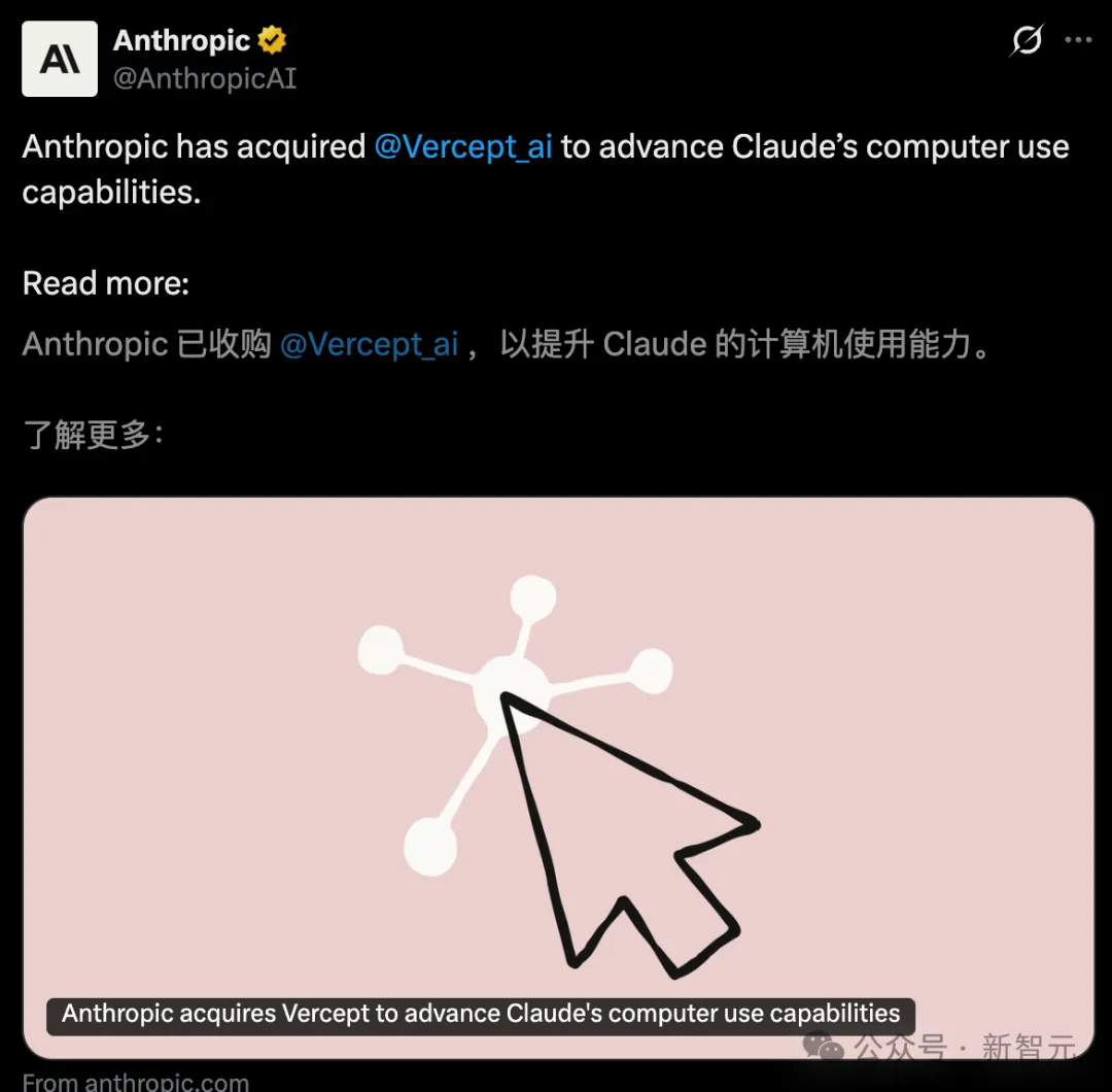 同在今天,Anthropic闪电收购初创Vercept,核心能力将在未来几周并入Claude。