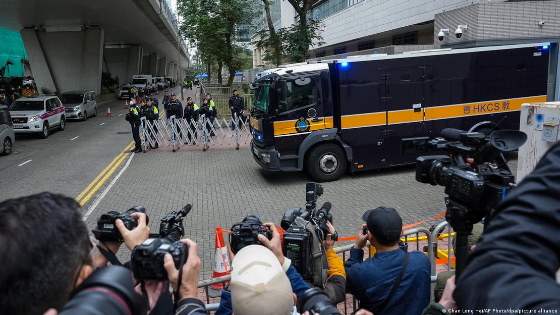 黎智英国安法案判决当日,记者等候在法院外 图像来源: Chan Long Hei/AP Photo/dpa/picture alliance