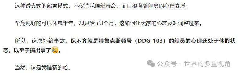 上图是之前文章的分析,看来被我瞎猜对了,撞船确实是因为驱逐舰的失误。