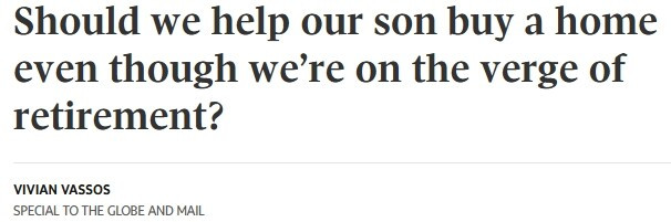 《环球邮报》近日刊登读者来信,询问:我们正处于退休边缘,但我们正在考虑,将帮助儿子买房作为退休计划的一部分。我们应该这样做吗?在这个过程中,我们应该考虑什么?TD Wealth高级投资顾问Jillian Bryan回答了这个问题。Bryan表示:“近年来,越来越多接近退休的客户提出类似问题:他们是否应该帮助成年子女买房,以及如果要帮助,如何以负责任的方式进行。”