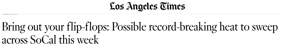 周五,洛杉矶的热浪有望追平甚至打破多项单日气温纪录。
