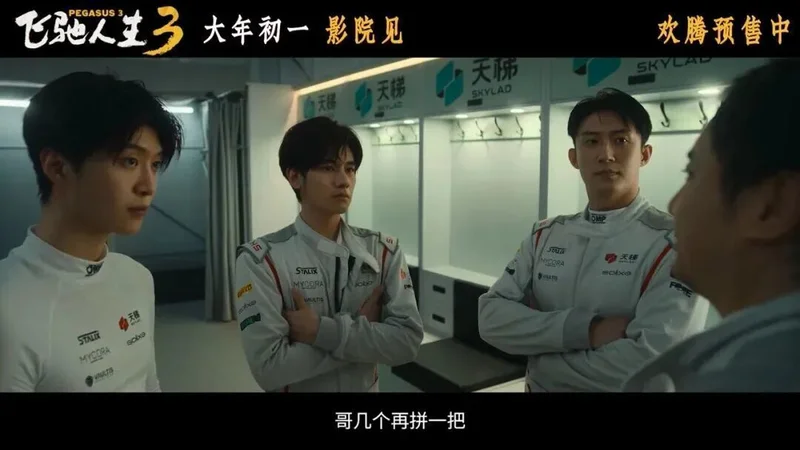 《飞驰人生3》的高潮部分,几辆汽车齐头并进,激烈角逐。