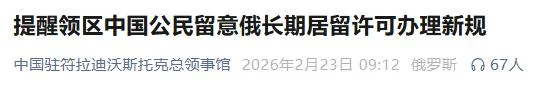 中领馆提醒领区内的中国公民留意上述新规,并结合自身实际情况审慎决定,确保在俄身份合法。