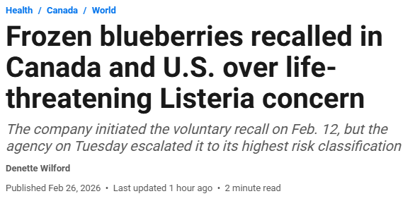 紧急提醒!近6万磅蓝莓在加拿大和美国被召回,风险已升至“最高级别”,严重可能致命!