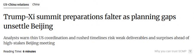 知情人士指出,尽管川普与习近平(专题)近期通话确认峰会将推进,但这反而将原本需要数月打磨的议程压缩至数周内完成。一名前美国官员形容当前筹备状态近乎“靠侥幸与祈祷推进(wing and a prayer)”,而中方对缺乏细化协调的状况“焦虑至近乎暴怒(apoplectic)”。