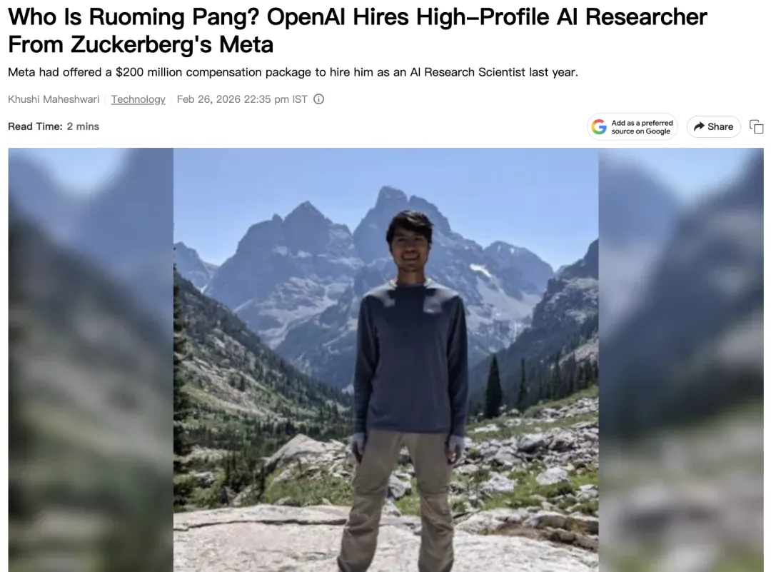 据悉,Meta 在去年为了从 Apple 挖走Ruoming Pang,曾开出了一个多年期、总价值超过 2 亿美元的薪酬包。