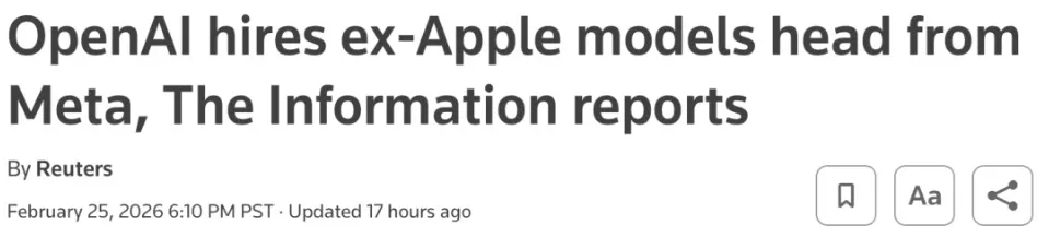 Ruoming Pang在过去 12 个月内完成了从 Apple 到 Meta、再从 Meta 到 OpenAI的三次跨越。据报道,OpenAI 为了此次挖角,进行了为期数月的积极招募。