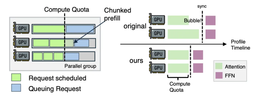同时,在节点内部,系统还会基于时间预估机制进行调度,将执行时间相近的请求打包到同一个批次中,最大程度减少GPU在等待同步时产生的计算气泡。