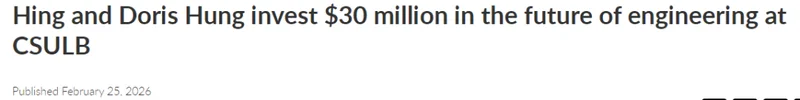 CSULB表示,校董会预计将在今年3月审议以洪氏家族为工程学院冠名的提案。