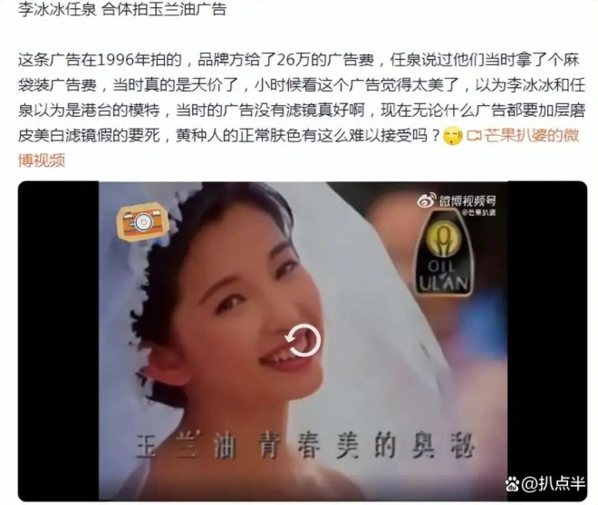 大学期间,为了贴补家用,李冰冰和同学任泉一起出去接广告赚钱。