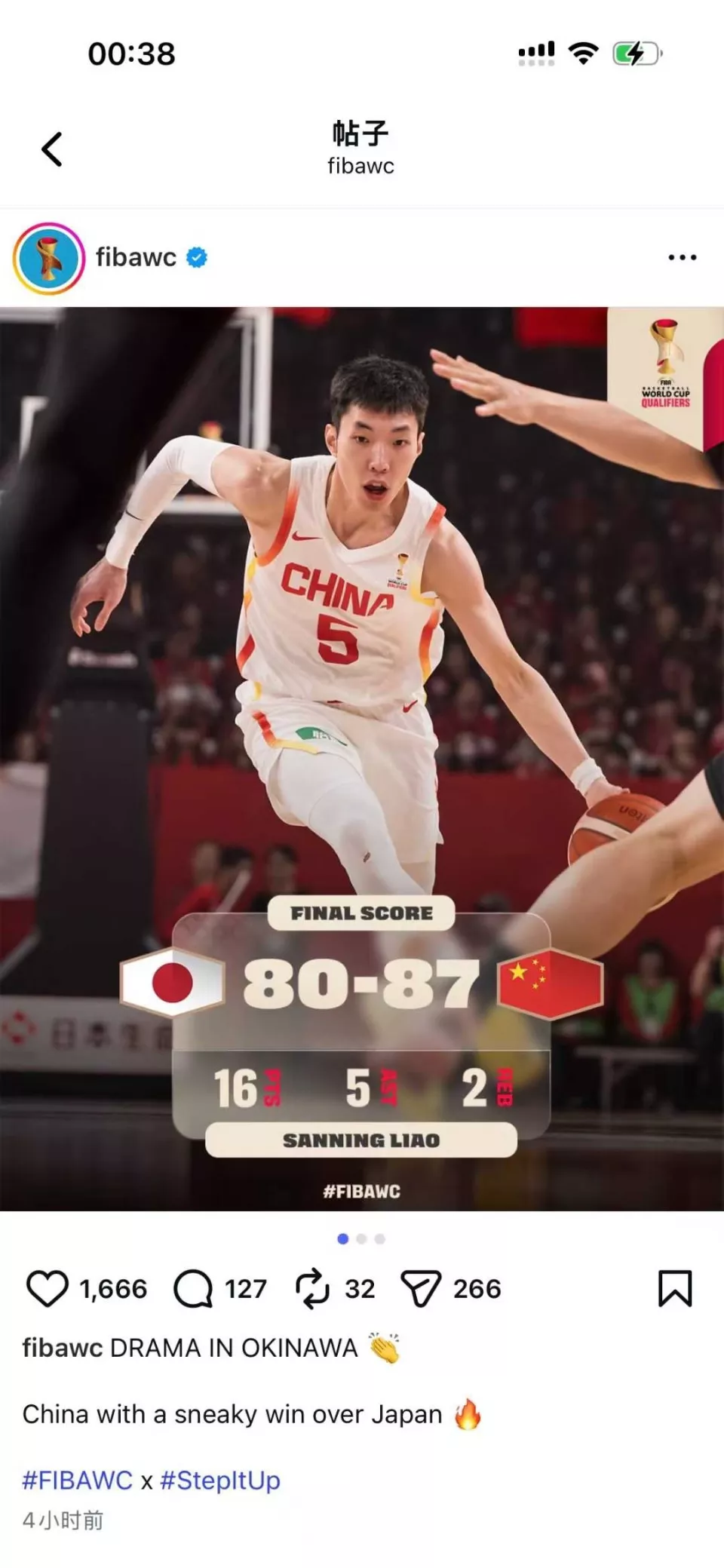 男篮取胜,FIBA官方暗讽念洲博客