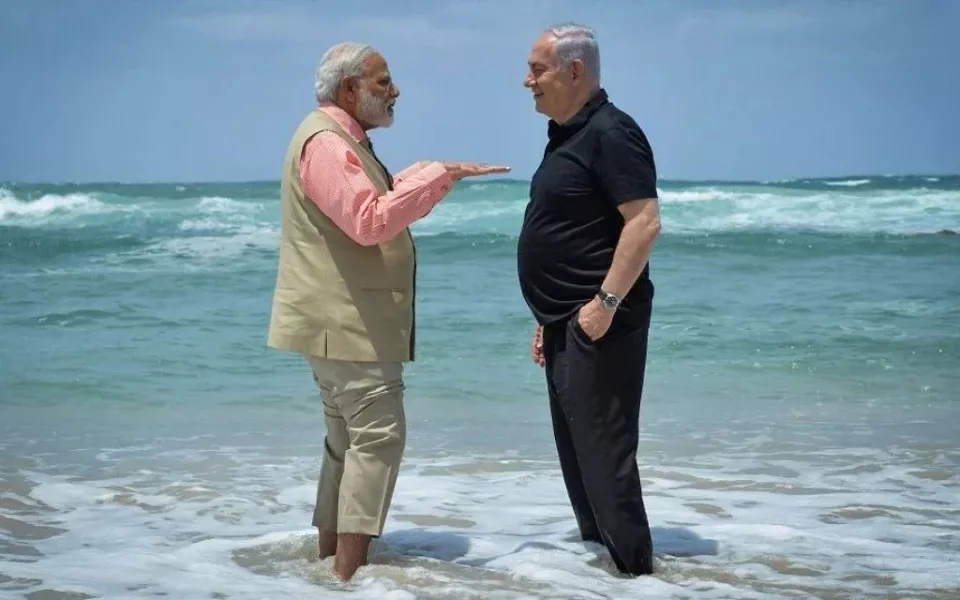 不仅如此,在新闻发布会上内塔尼亚胡还回忆起莫迪2017年访问以色列时的情景,他说道,“我们脱掉鞋子,在海洋中涉水而行。我们虽未行走于水面之上,却共同创造了奇迹。”