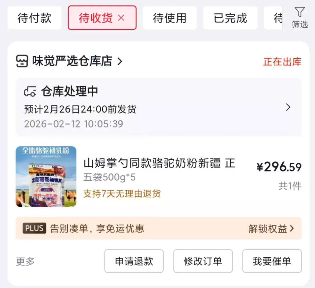 老程还是不信邪,“到了2月,京东平台上的假驼奶粉还在卖,在我反复反映了几个月的情况下仍然如此,匪夷所思。”为了确认这一点,2月12日,他干脆又在京东平台上随机下了一单,今天,2月22日,货还没有快递到家,但从商品详情图片看,和之前的假货相当接近。