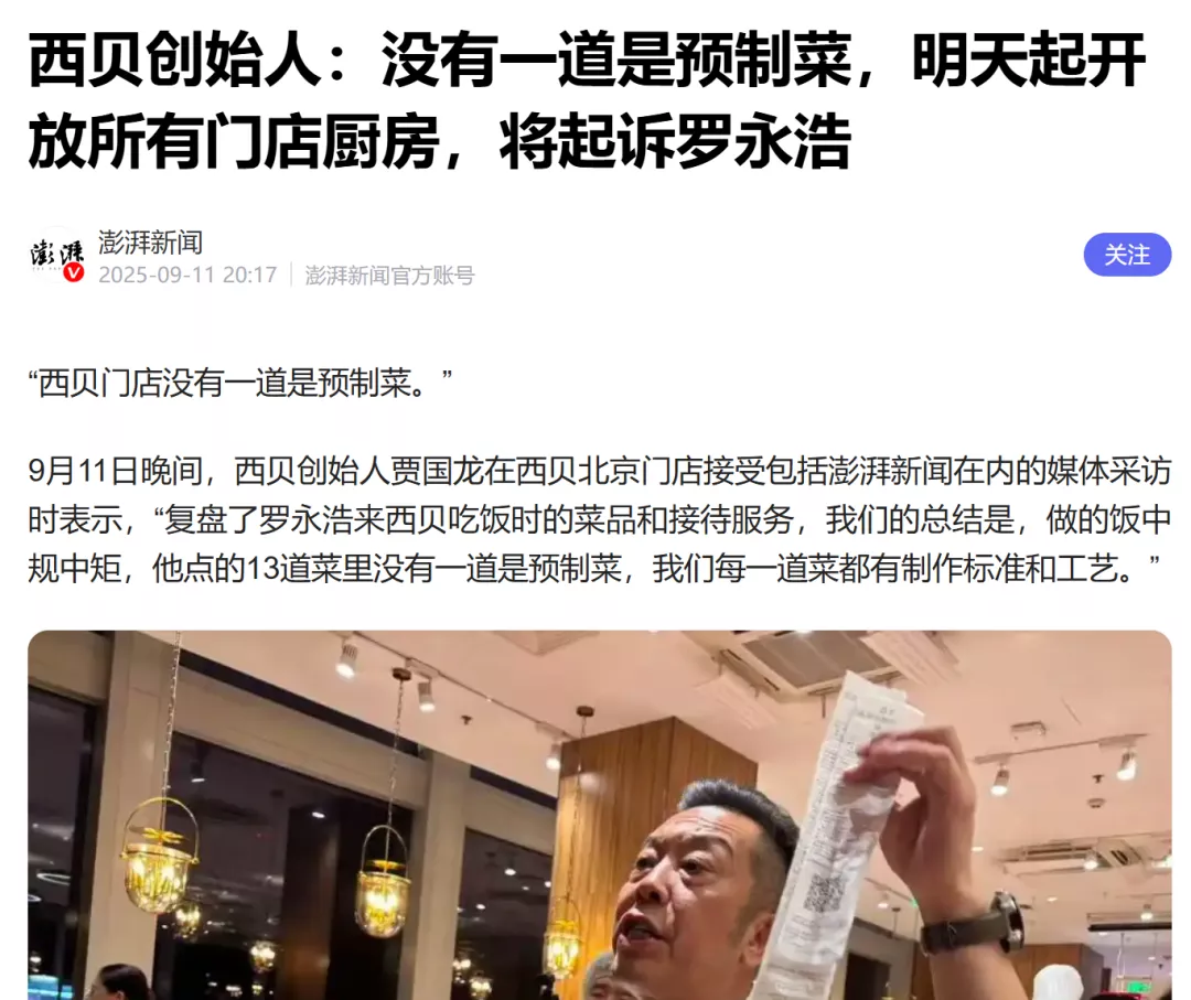 看到这番发言,我不禁想起西贝莜面村创始人贾国龙面对媒体镜头信誓旦旦的发言“西贝没有一道是预制菜,明天起开放所有门店厨房”,时间也相差不远,结果,恰恰是这一次开放厨房,提供了大量让顾客目瞪口呆的素材,让西贝翻车了。