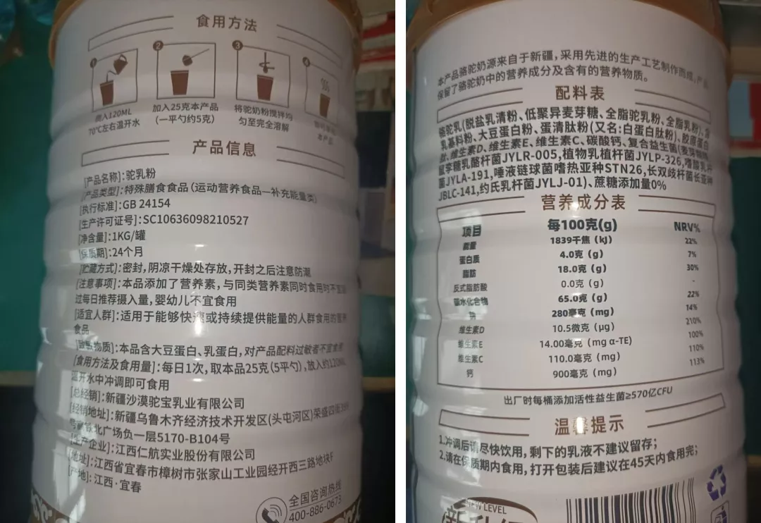 2025年10月15日,他下班回家,看到家里的老人从一个线下门店买了5袋驼奶粉。老人对驼奶粉的宣传功效颇为向往,但他感觉,这奶粉很不对劲。