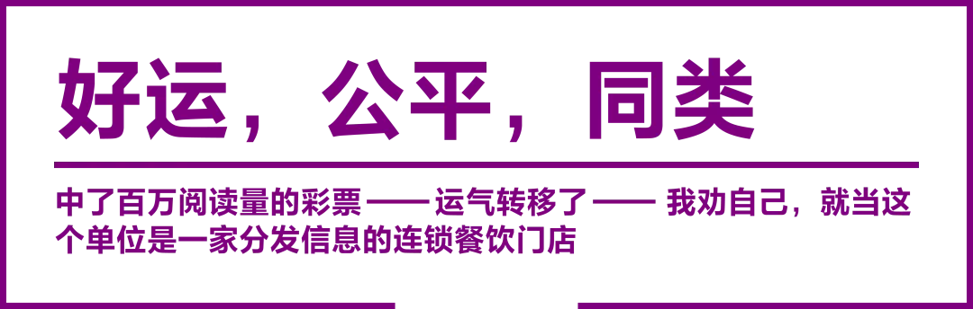 有时候我也开导自己,或许就像连锁的餐饮店,像麦当劳、肯德基,他们在各地需要开出自己的线下门店,只是我们做新媒体的是在网上开设服务于不同地域的「门店」罢了,我们服务于不同的用户群体,有媒体已经发了这条新闻,并不代表着大家都能看到这条新闻,总需要成千上百的面向不同受众群体的号持续分发,才能确保这条新闻的覆盖面足够广。